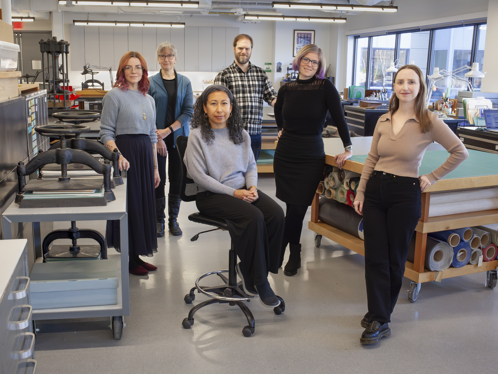 Book Conservation (left to right): Abra Mueller, Jessica Henze, Audrey Jawando, Ned Schultz, Bexx Caswell-Olson, and Morgan Mahan